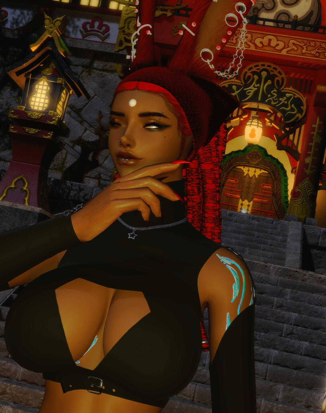 Lavasha cen ApiciusAge: 30 ( Appears as a Mature Young Viera)Skin/fur: Slight dark-toned fur sheen with colored tips on the ears.Abode: Kugane.Appearance details: Has a pearlescent Third Eye and a variety of tattoos and piercings. Favors high-class ornery jewels and tops. Prefers to be able to move, so you’ll rarely find her in a dress. Her body is a combination of flesh and nuanced Magitek.Disability: Has splitting headaches often, a side effect of her body being augmented as well as not her own due to soul transfer experimentation. Slurred speech and blurry vision are to be expected.Personality: A soft smile with a shockingly sharp tongue. She cannot be deceived, and her manipulative nature, paired with a penchant for superiority, makes her a foe to many and a trustworthy ally to those she deems safe.
